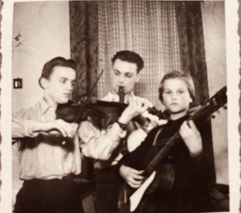 Das Gäbler-Trio wurde gern von Plauener Honoratioren zur musikalischen Untermalung ihrer Festivitäten eingeladen. Dorits Bruder Mäckie (l.) spielte Geige, Gunter Flöte und die hier zehnjährige Dorit sang zur Gitarre © Gäbler/privat