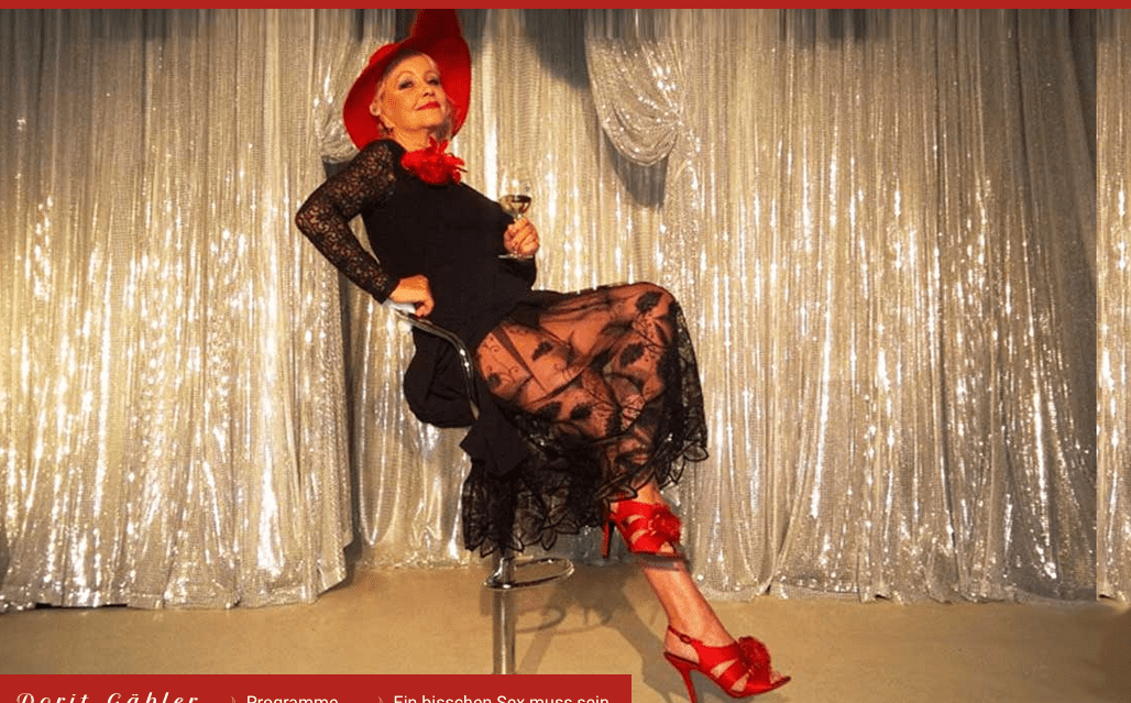 Manches in dieser Zeit machte sie, um das sprichwörtliche Brot zu verdienen. Sie testete Antifalten-Cremes, ließ sich für eine MDR-Dokumentation die Augenlider liften. „Das ist fast 25 Jahre her. Heute würde ich das nicht wieder machen“, sagt die 80jährige, „aber es half mir, den Blick in den Spiegel zu ertragen, nachdem ich 60 geworden war. Inzwischen weiß ich, es gibt auch jenseits der sechsten Null ein erfülltes Leben. Natürlich sollten dabei Sex und Erotik nicht außen vor bleiben. Auch sehr reife Frauen dürfen sich sexy und erotisch fühlen. Sie müssen es nur zulassen“, meint sie. Ihr Programm „Ein bisschen Sex muss sein“ ist ein Zuruf an die Frauen, dass Sex auch im reifen Alter noch Spaß machen kann. „Ich möchte ihnen die Ressentiments nehmen. Sex muss nicht immer zielführend sein. Wenn man zusammensitzt, sich ankuschelt, ein Schluck Wein mit dem Mund weitergibt, ist das eine sexuelle Handlung, verdammt noch mal!“