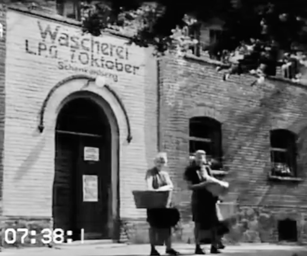 Bäuerinnen kommen mit frischer Wäsche aus der Wäscherei von Schenkenberg Quelle: Youtube „Herren der Felder“ 1953, Regie Walter Beck © BKA/DEFA-Stiftung/ Wolfgang Randel